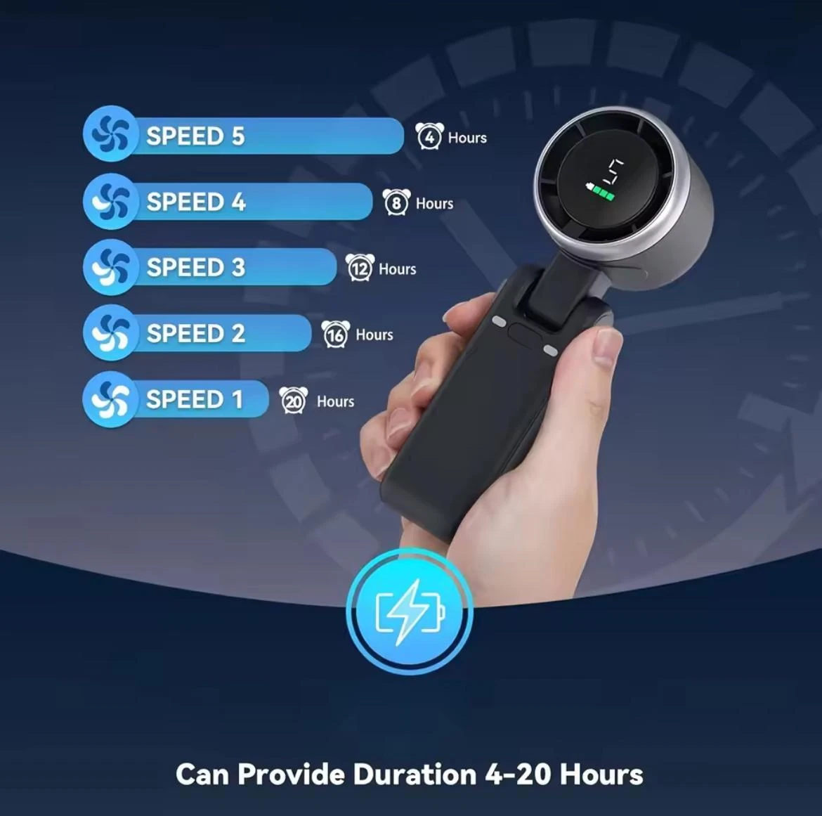 Enjoy extended cooling on a single charge, making it perfect for everyday use, office work, travel, study, and temporary power outages.